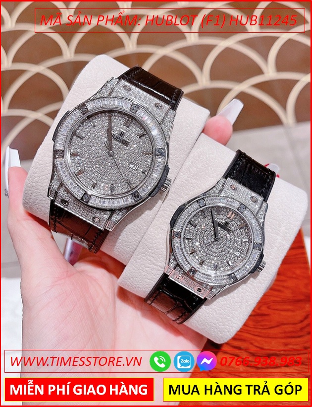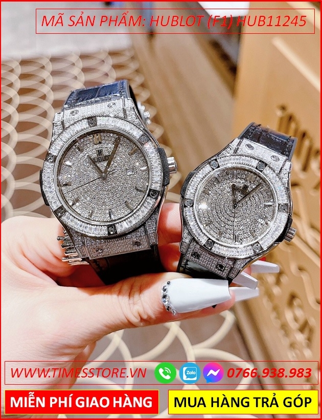 Đồng Hồ Cặp Đôi Hublot F1 Bigbang Mặt Full Đá Dây Da Bọc Silicone (34mm-42mm)