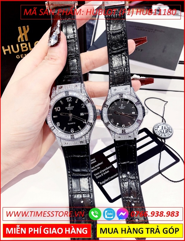 Đồng Hồ Cặp Đôi Hublot F1 Bigbang One Click Đính Đá Dây Da (34mm-42mm)
