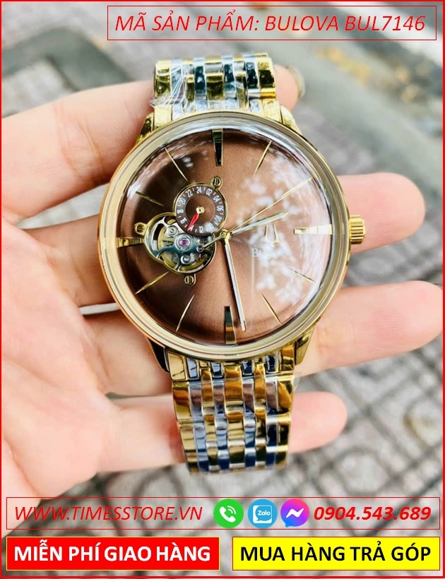 Đồng Hồ Nam Bulova Automatic Mặt Nâu Lộ Tim Dây Demi Vàng Gold (40mm)