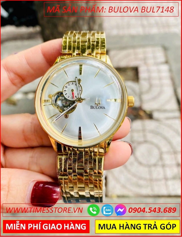Đồng Hồ Nam Bulova Automatic Mặt Trắng Lộ Tim Dây Vàng Gold (40mm)