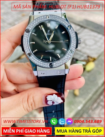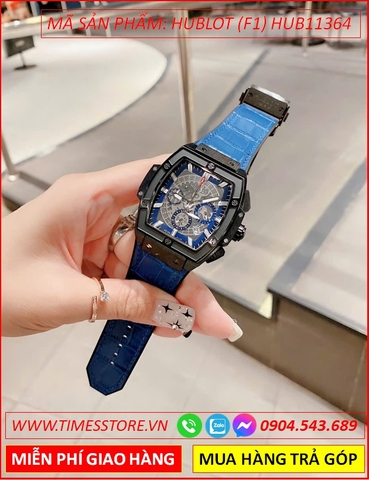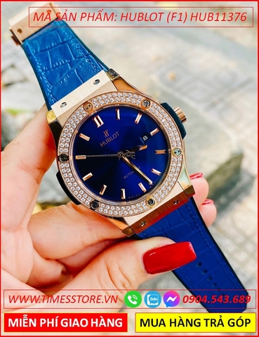 Đồng Hồ Nam Hublot F1 Automatic Rose Gold Đính Đá Dây Da Xanh Bọc Silicone (42mm)