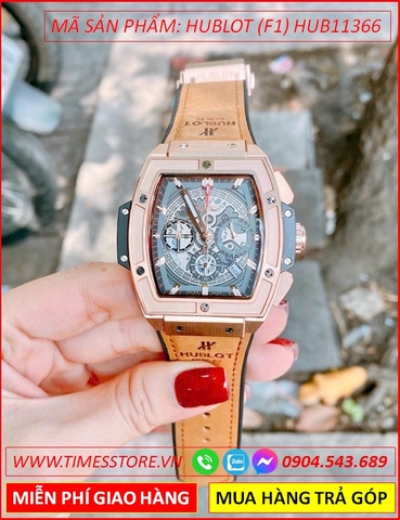 Đồng Hồ Nam Hublot F1 Automatic Rose Gold Lộ Cơ Dây Da Nâu Bọc Silicone (42mm)