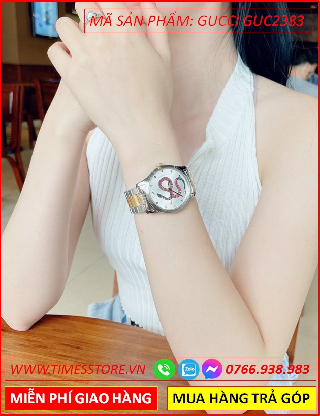 Đồng Hồ Nam Gucci Timeless Mặt Hình Con Rắn Dây Demi Vàng Gold (38mm)