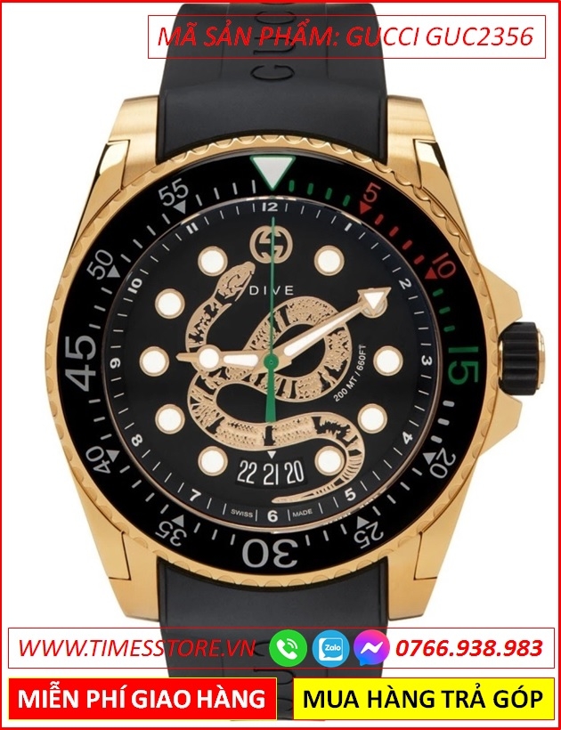Đồng Hồ Nam Gucci Unisex Dive Mặt Con Rắn Vàng Gold Dây Silicone (40mm)