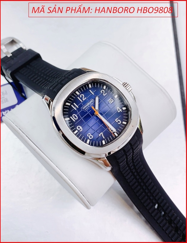 Đồng Hồ Nam Hanboro Tựa Patek Philip Mặt Xanh Dây Silicone (40mm)