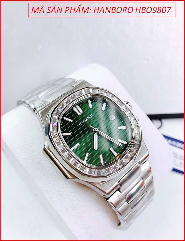 Đồng Hồ Nam Hanboro Tựa Patek Philip Mặt Xanh Lá Dây Kim Loại (40mm)
