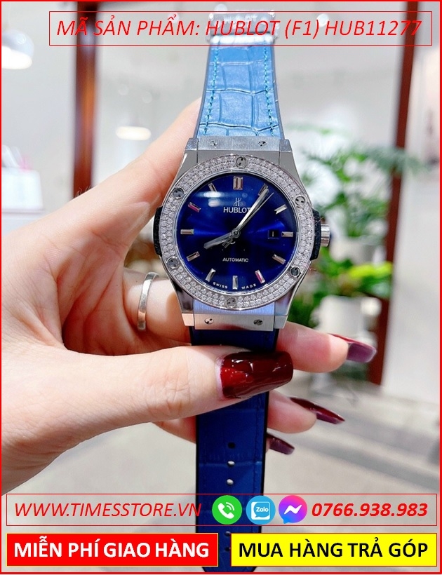 Đồng Hồ Nam Hublot F1 Automatic Đính Đá Dây Silicone Xanh (42mm)