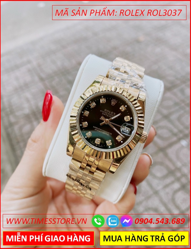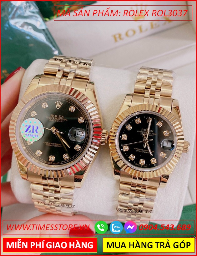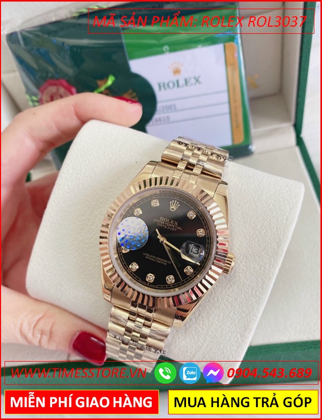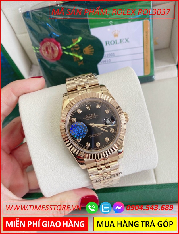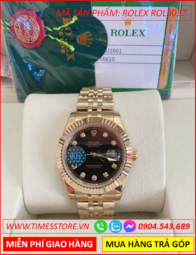 Đồng hồ Nam Rolex siêu cấp mặt Đen niềng khía Vàng Gold (41mm)