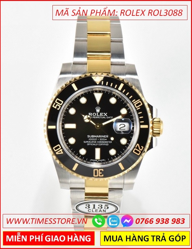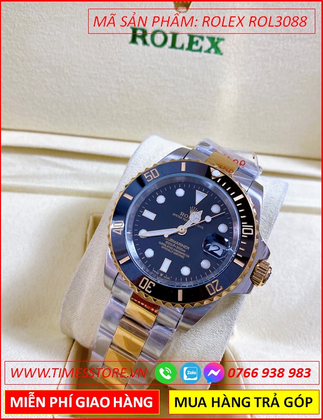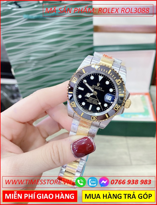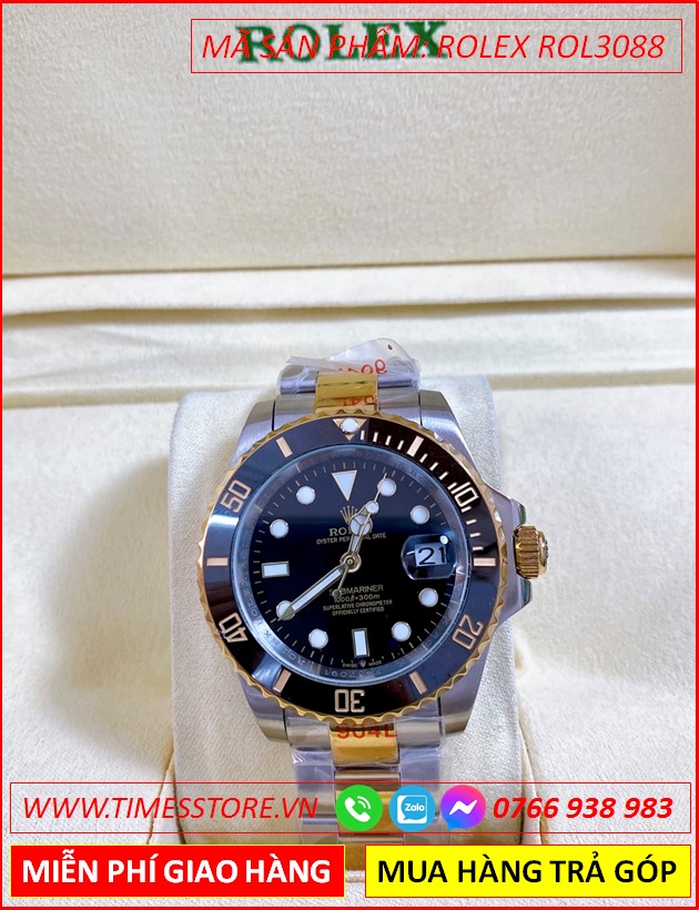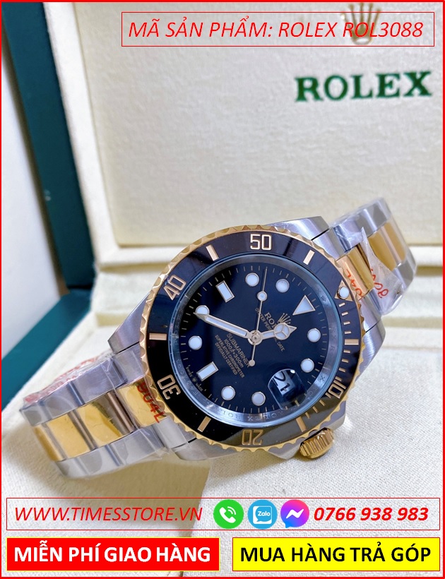 Đồng Hồ Nam Rolex Submariner Automatic Mặt Đen Dây Demi (41mm)