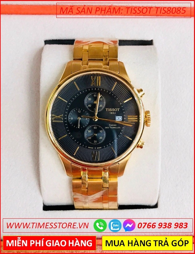 Đồng Hồ Nam Tissot T009 Mặt Đen 6 Kim Dây Vàng Gold (42mm)